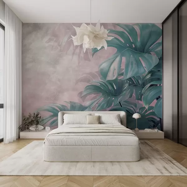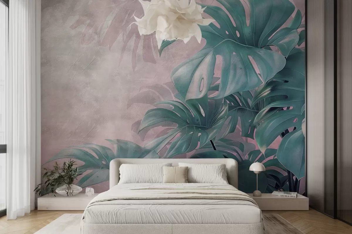 Fotomurales Grandes hojas de monstera sobre un delicado fondo rosa Nr. w01901