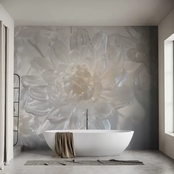 Fotomurales Crisantemos silvestres de cristal iluminados con luz blanca, un arreglo floral delicado y vaporoso Nr. w01935