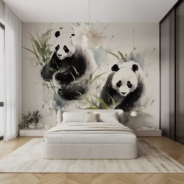 Fotomurales Pandas difuminados estilo acuarela húmeda Nr. w01948