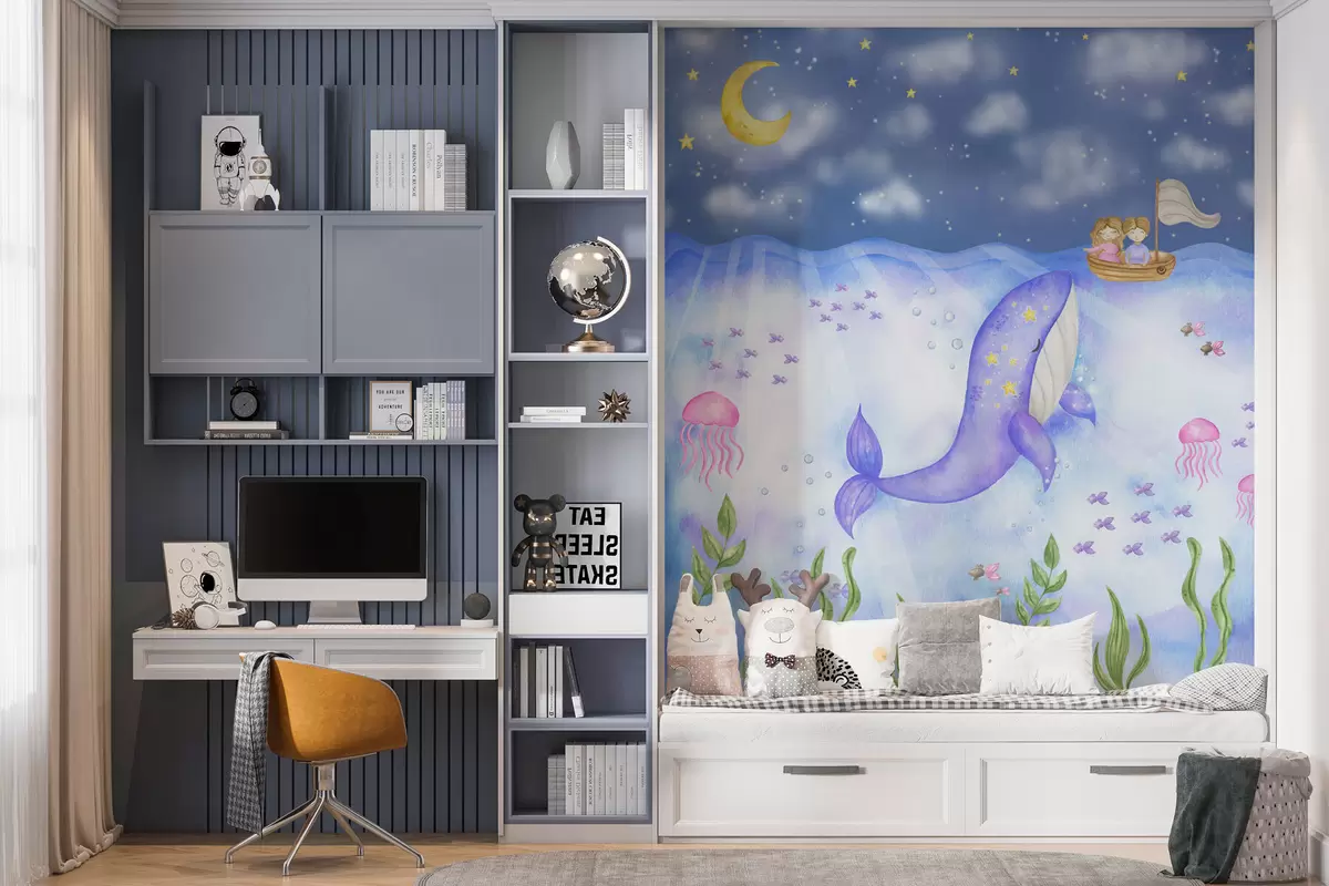 Fotomurales Una ballena nada bajo una noche estrellada. Nr. w01965