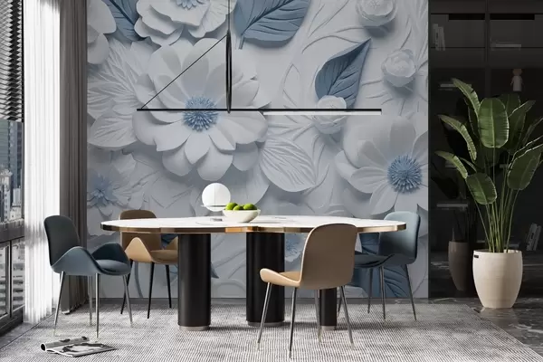 Fotomurales Flores volumétricas de yeso en dos colores Nr. w02006v1