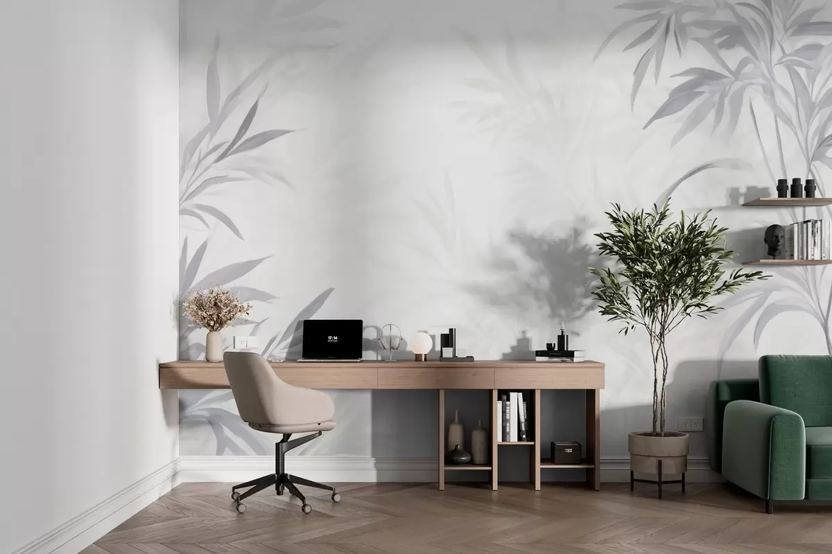 Fotomurales Sutiles siluetas de hojas en suave estilo pastel Nr. w02031