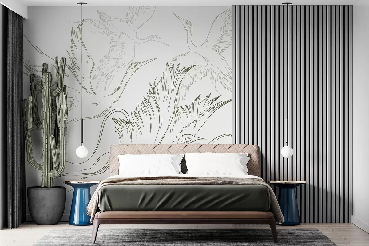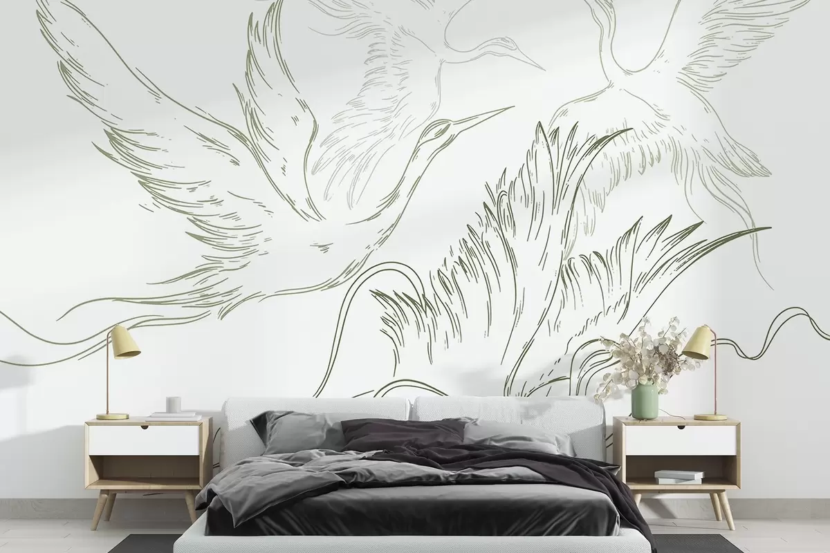 Fotomurales Pájaros volando, minimalismo, arte lineal, naturaleza, color verde Nr. w02061v2