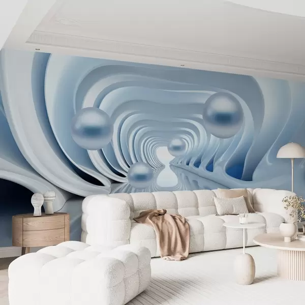 Fotomurales Papel pintado futurista con una panorámica del túnel en perspectiva y perlas voladoras Nr. w02134