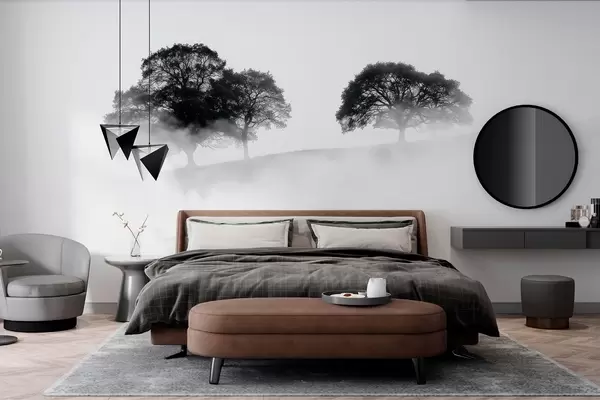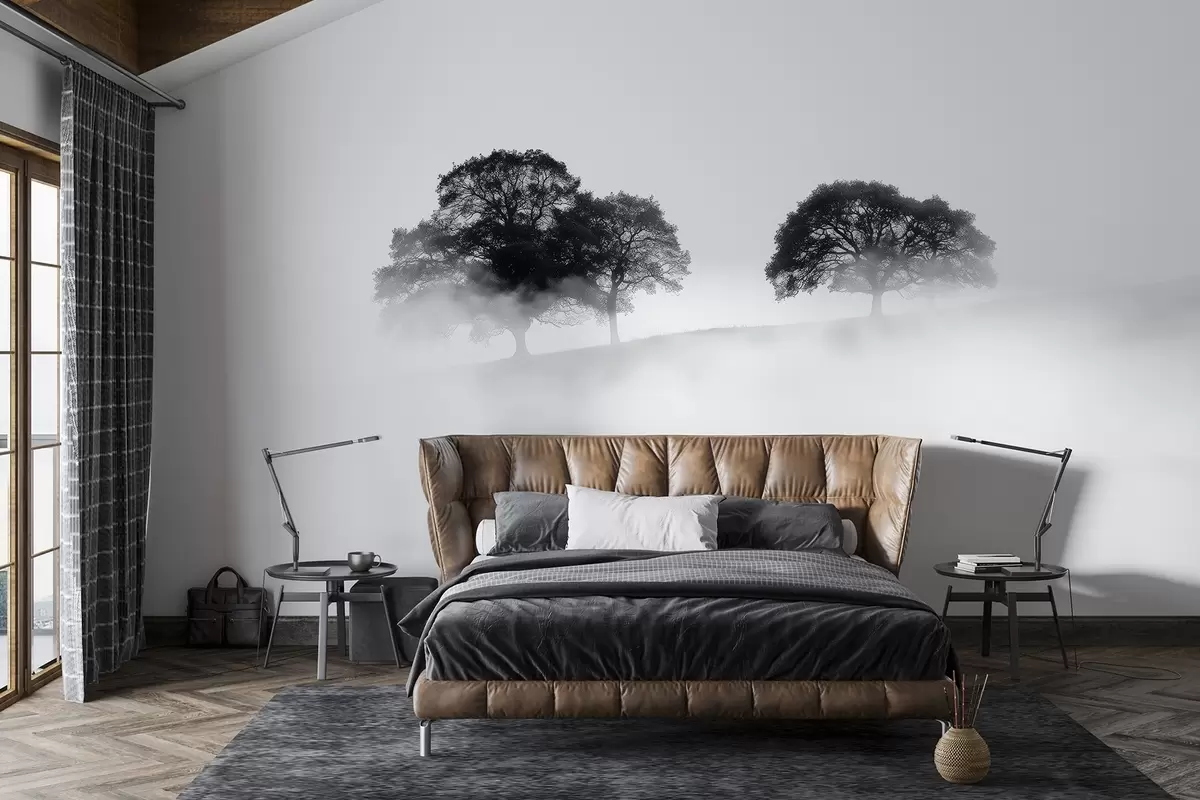 Fotomurales Árboles en la colina, minimalismo, naturaleza, blanco y negro Nr. w02148