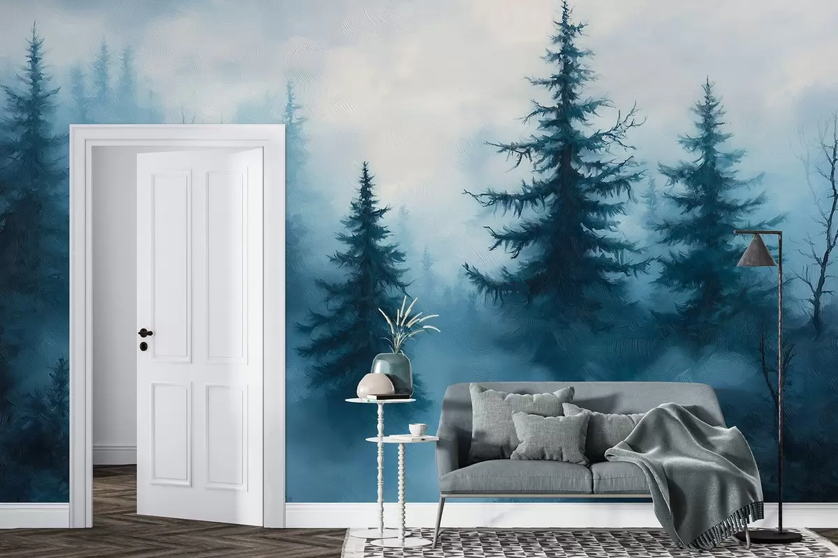 Fotomurales Bosque azul oscuro, pintura al óleo, pinceladas, naturaleza Nr. w02153