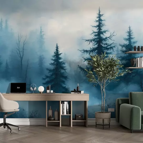 Fotomurales Bosque azul oscuro, pintura al óleo, pinceladas, naturaleza Nr. w02153