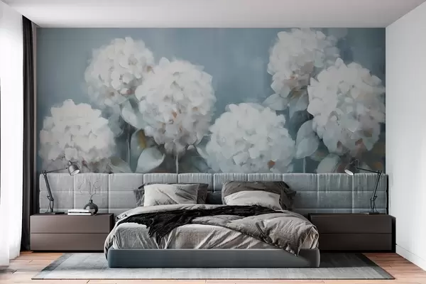 Fotomurales Hortensias blancas sobre fondo azul Nr. w02159