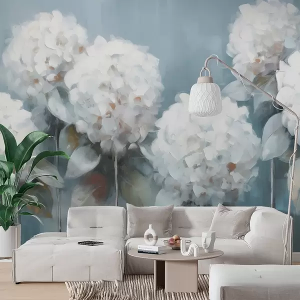 Fotomurales Hortensias blancas sobre fondo azul Nr. w02159