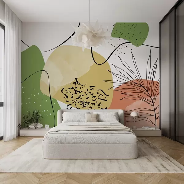 Fotomurales Abstracción de manchas y líneas, geométricas, verdes, rojas, amarillas Nr. w02168
