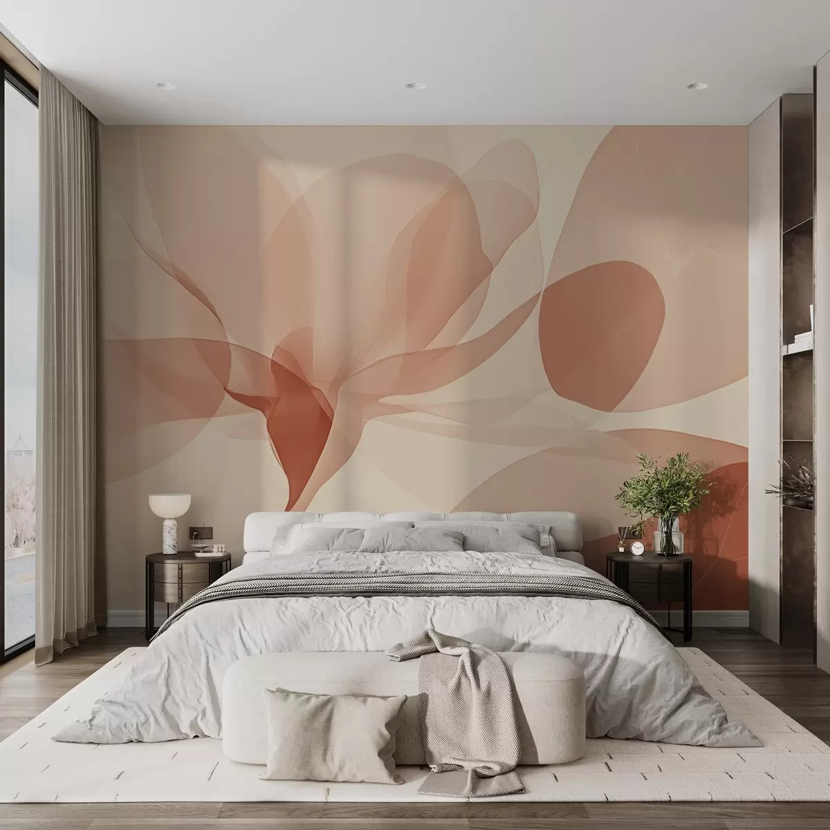 Fotomurales Delicada gardenia translúcida y sus hojas en color caral Nr. w02194v1