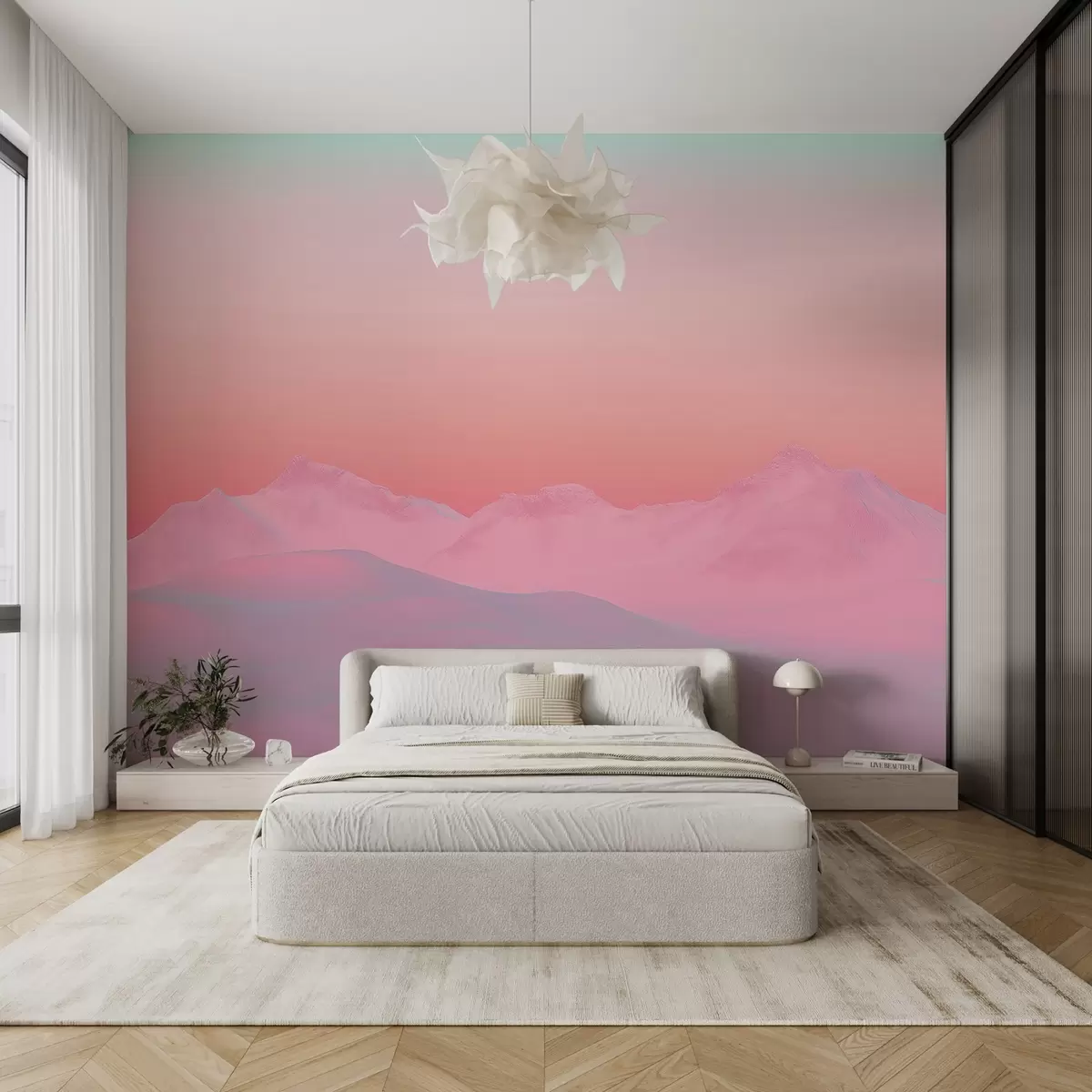 Fotomurales Suave puesta de sol frambuesa con las montañas y el cielo como telón de fondo Nr. w02234