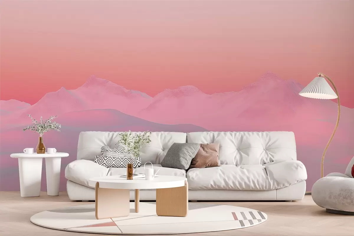 Fotomurales Suave puesta de sol frambuesa con las montañas y el cielo como telón de fondo Nr. w02234