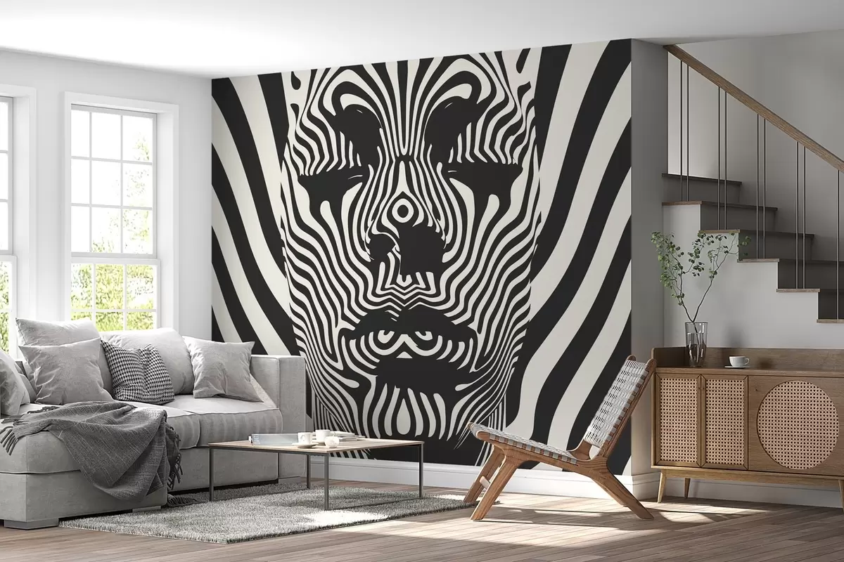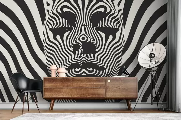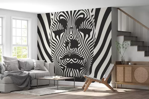 murales de pared Op art estilo enrejado con la cara abstracta, líneas onduladas sobre fondo de color claro. w02285