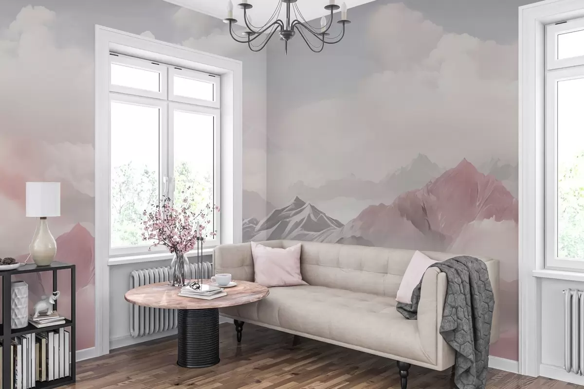 Fotomurales Montañas rosadas entre niebla y nubes hinchadas Nr. w02296