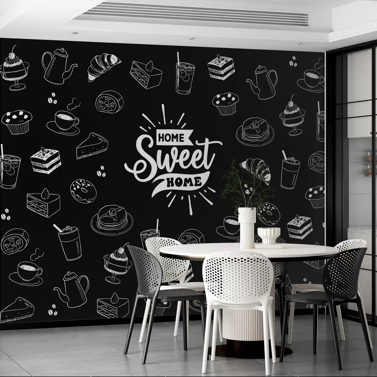 Fotomurales papel pintado negro para la cocina con motivos blancos Nr. w02349