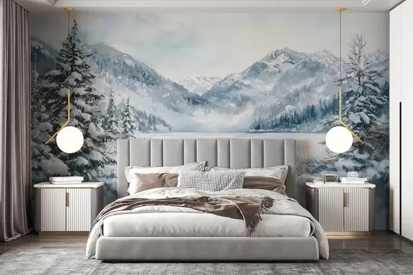 Fotomurales Montañas nevadas, estilo acrílico, bosque invernal, naturaleza Nr. w02355