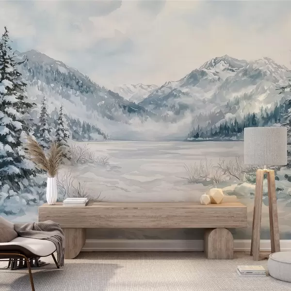 Fotomurales Montañas nevadas, estilo acrílico, bosque invernal, naturaleza Nr. w02355