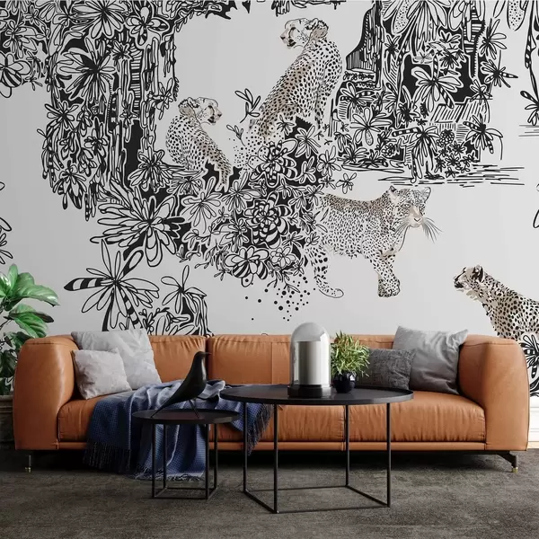 Fotomurales Leopardo y árboles en tonos grises Nr. w02364v1