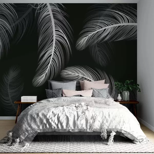 Fotomurales Plumas blancas sobre fondo negro Nr. w02369v4