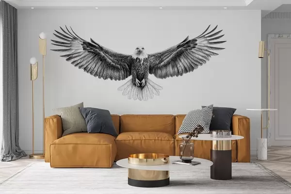 murales de pared Águila voladora, dibujo a lápiz, pájaros, minimalismo w02370