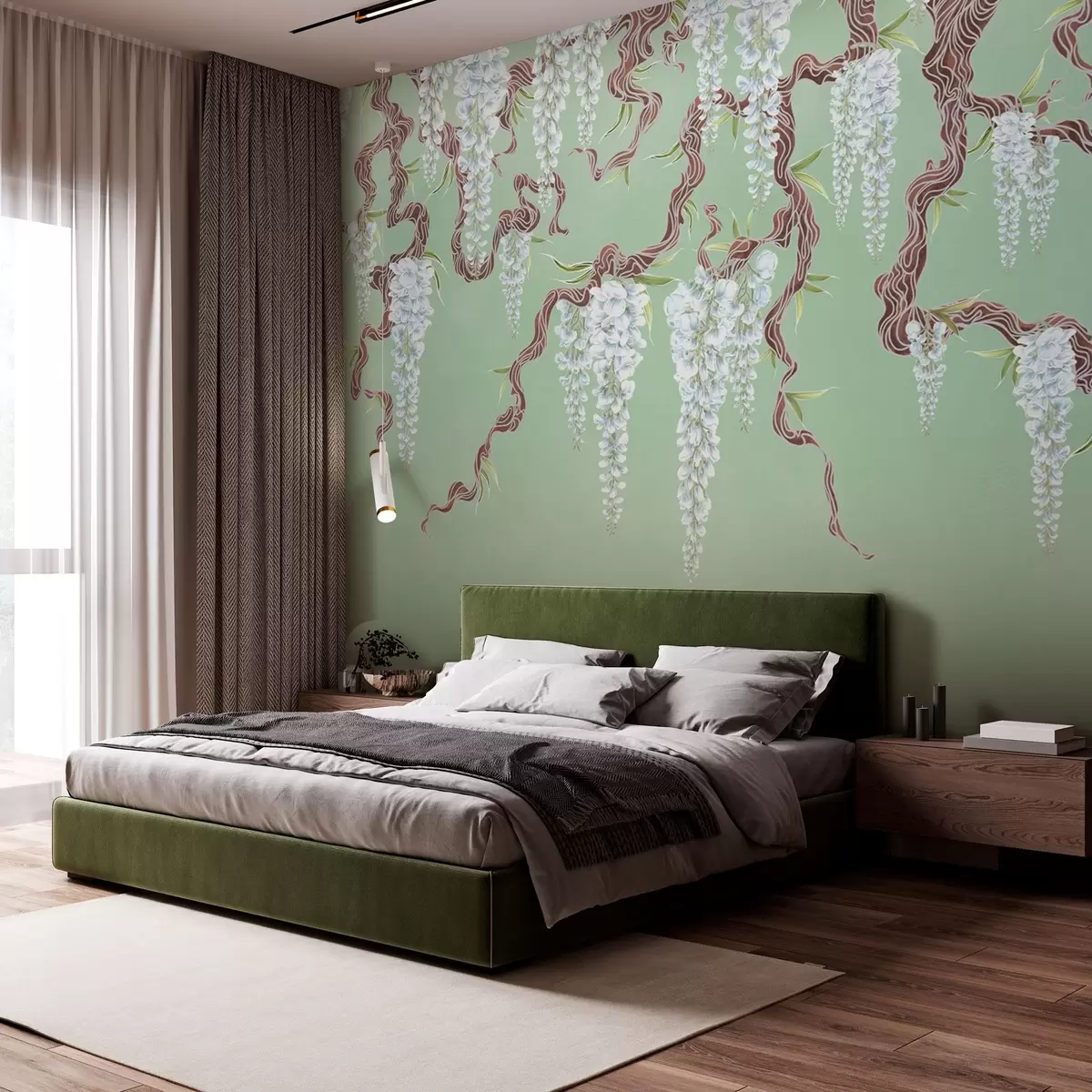 Fotomurales Glicinias azules sobre fondo verde grunge Nr. w02372v3
