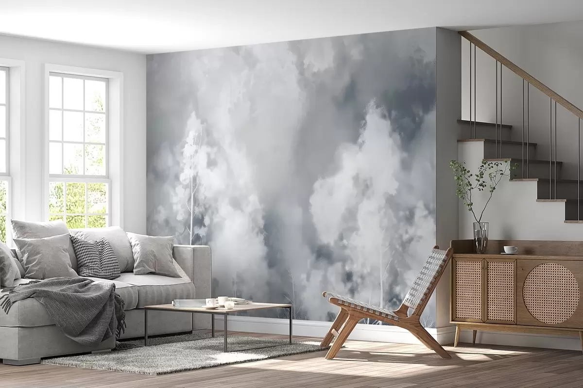 Fotomurales Bosque elegante en colores pastel, efecto tiza en la pared Nr. w02412