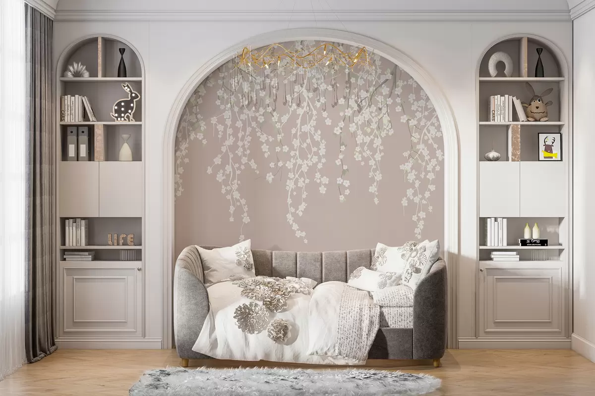 Fotomurales Ramas delicadas con flores sobre fondo pastel Nr. w02479v2