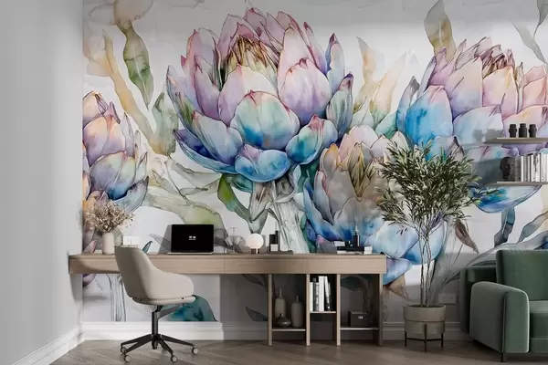 Fotomurales Alcachofas dibujo, estilo acuarela, floral, púrpura, beige, verde Nr. w02484