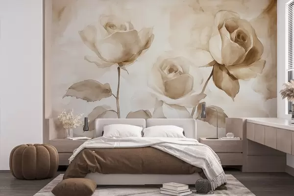 Fotomurales Rosas beige, flores, dibujo acuarela suave, rústico, bohemio Nr. w02490