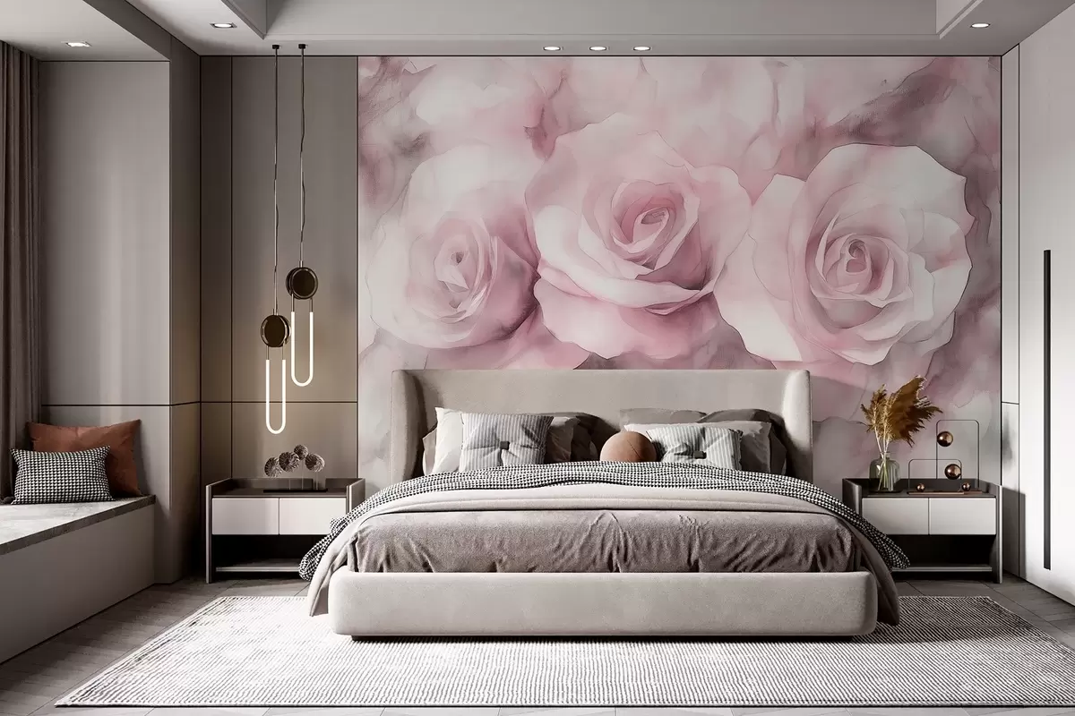 Fotomurales Hermosas rosas, estilo acuarela, colores rosas, bohemio Nr. w02492v1