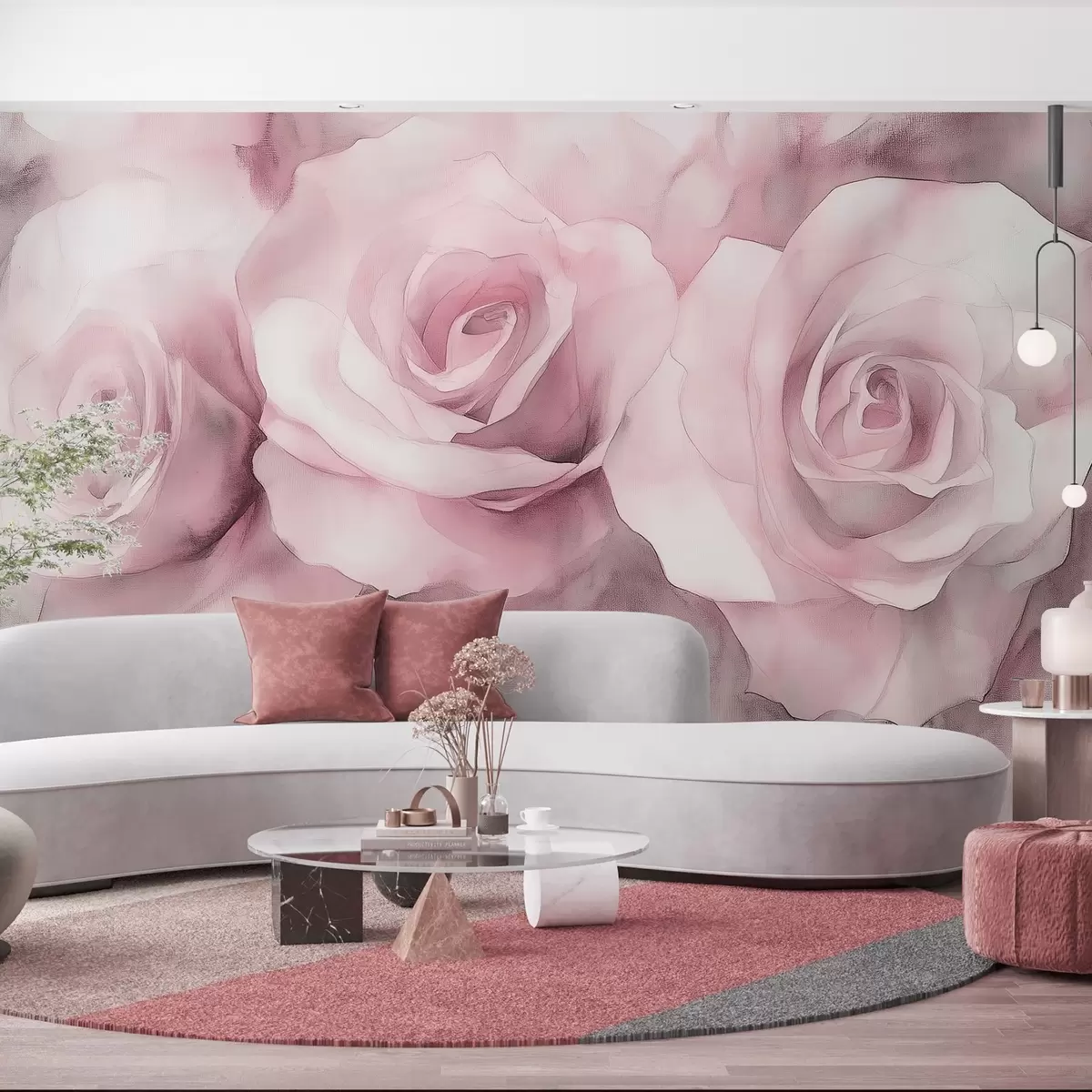 Fotomurales Hermosas rosas, estilo acuarela, colores rosas, bohemio Nr. w02492v1