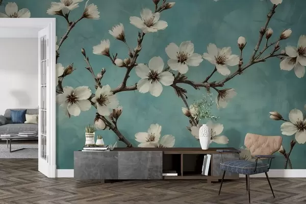 Fotomurales Ramas en flor sobre fondo de hormigón Nr. w02610