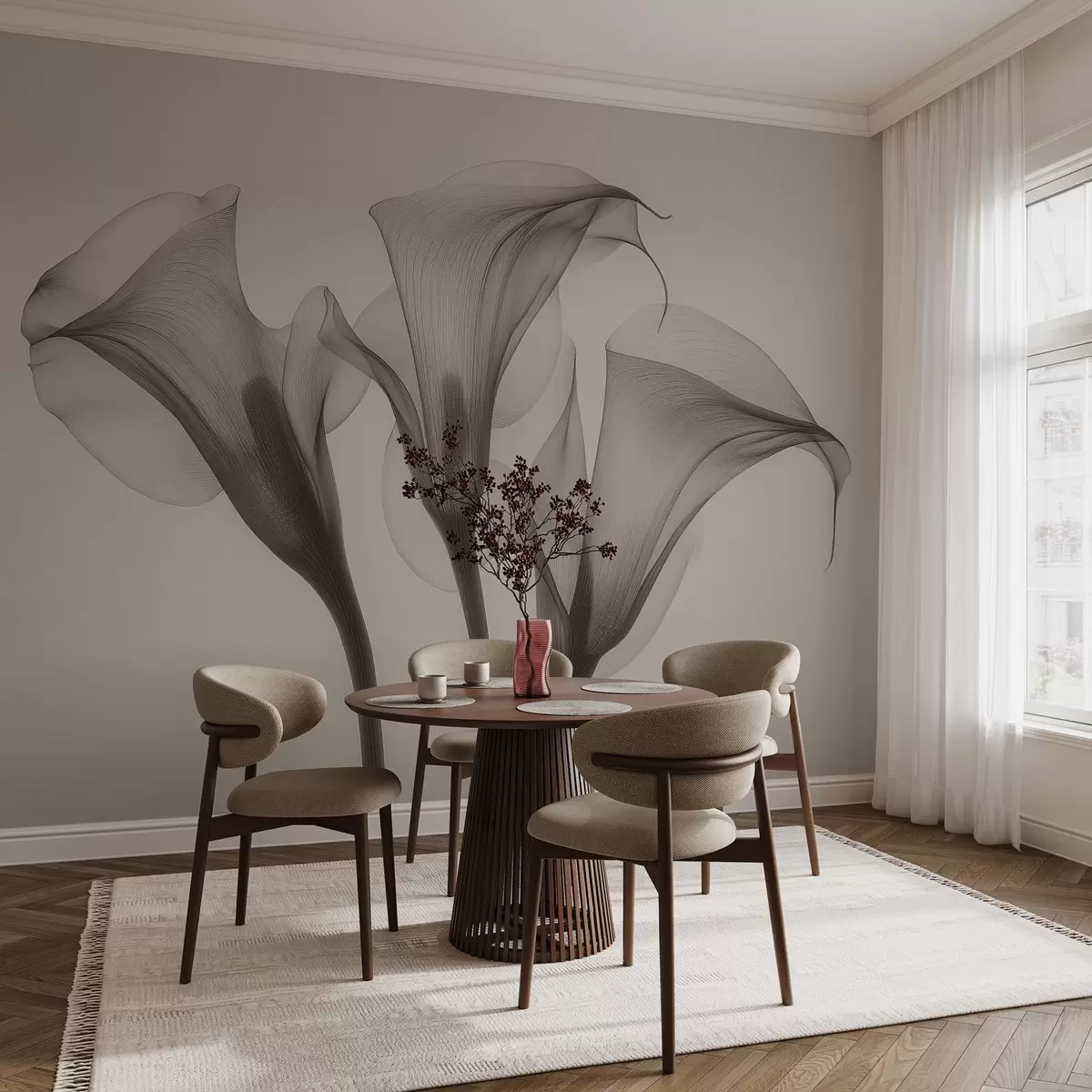 Fotomurales flores transparentes de Zantedeschia en tonos beige Nr. w02632