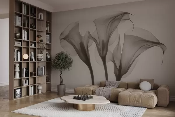 Fotomurales flores transparentes de Zantedeschia en tonos beige Nr. w02632