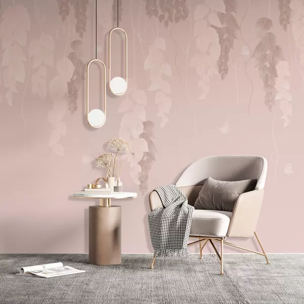 Fotomurales Hojas colgantes y mariposas en rosa Nr. w02655