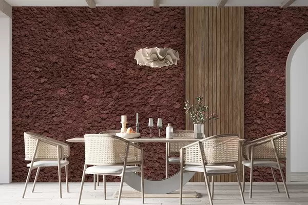 Fotomurales Pared estilo musgo con panel de madera, exuberantes colores burdeos Nr. w02656v1