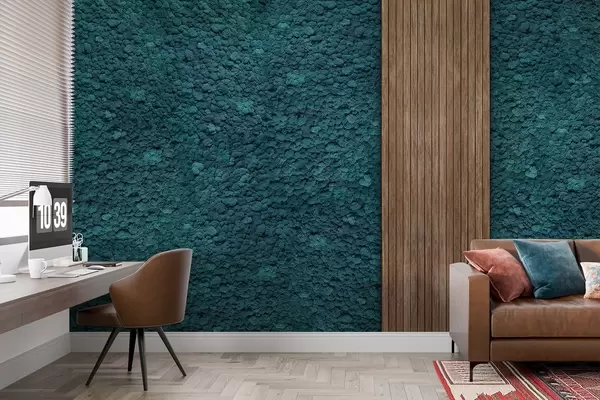 Fotomurales Pared estilo musgo con panel de madera, exuberantes colores azules Nr. w02656v2