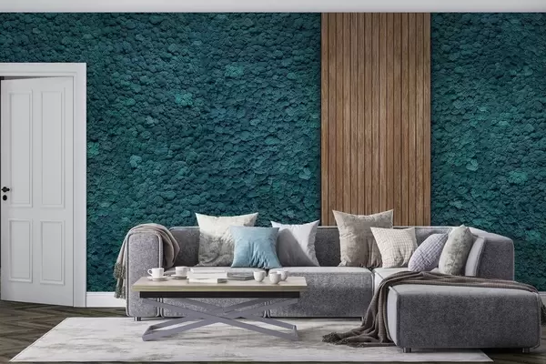 Fotomurales Pared estilo musgo con panel de madera, exuberantes colores azules Nr. w02656v2