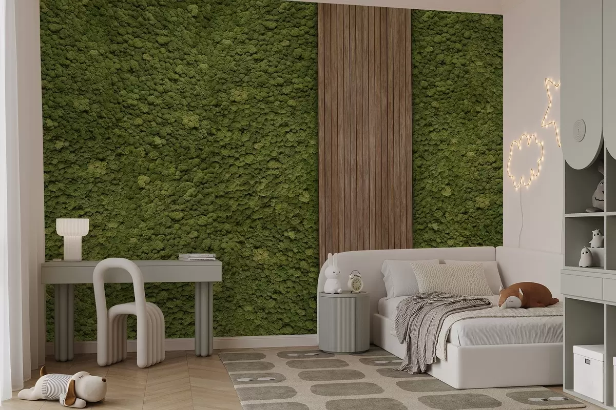 Fotomurales Pared estilo musgo con panel de madera, exuberantes colores oliva Nr. w02656v3
