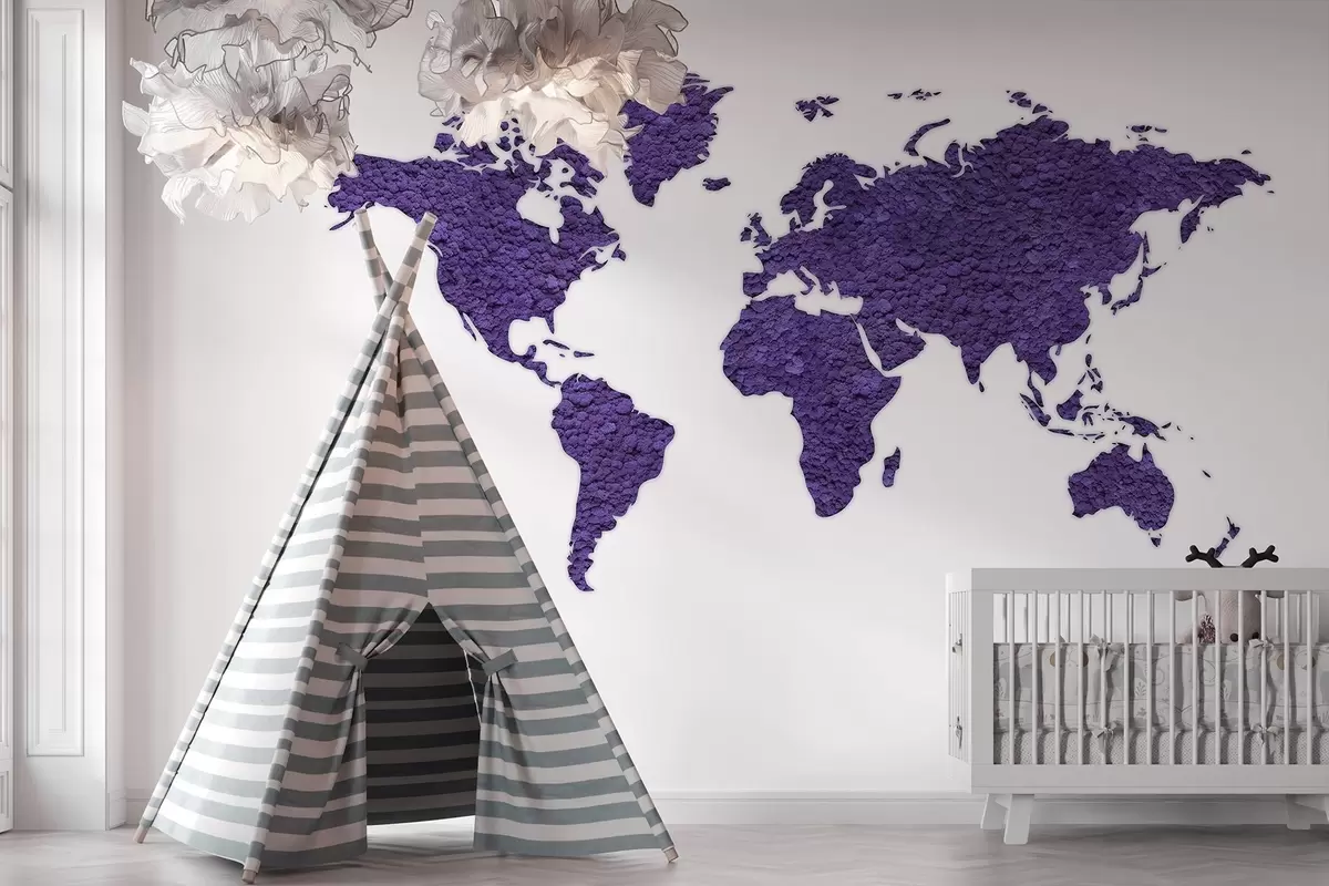 Fotomurales Mapamundi con musgo, naturaleza, paleta de colores púrpura Nr. w02657v3