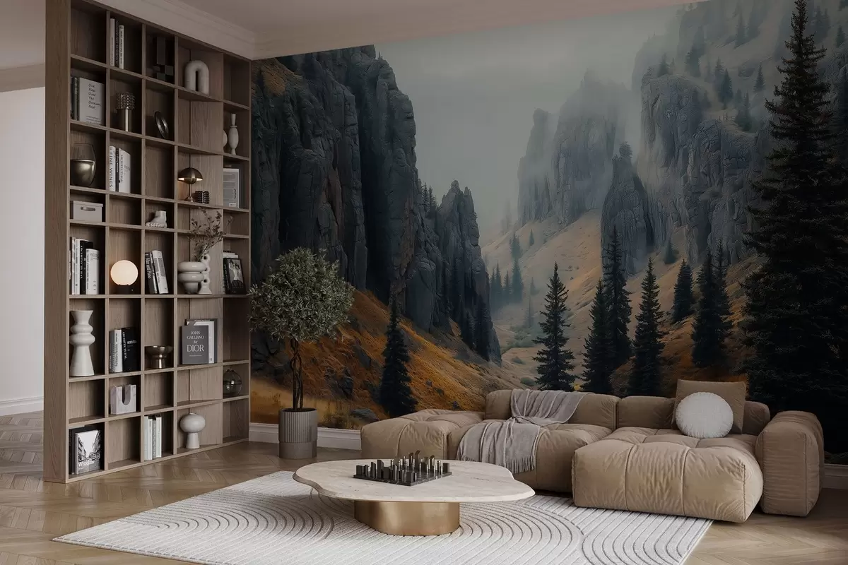 Fotomurales paisaje místico con rocas y abetos Nr. w02682