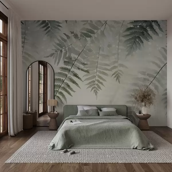 Fotomurales Hojas de helecho imitación acuarela Nr. w02730