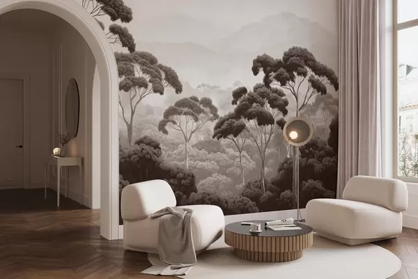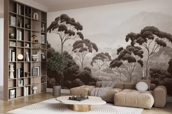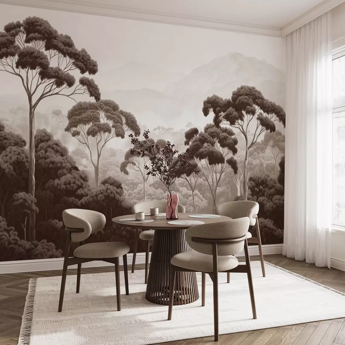 Fotomurales Selva, montañas, tropical, naturaleza, árboles grandes, colores marrones Nr. w02739v2