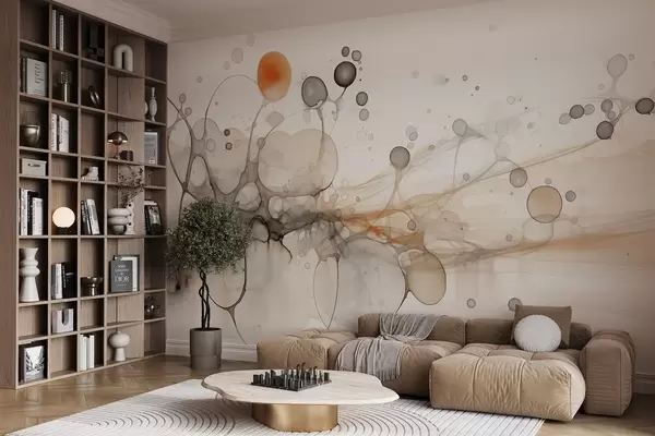 Fotomurales Abstracción, minimalismo, tinta, colores fluidos, beige y grises Nr. w02750
