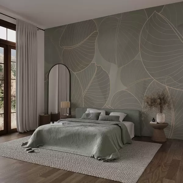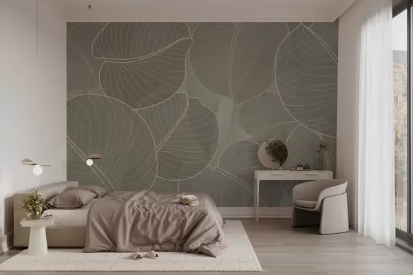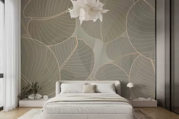 murales de pared follaje lineal del lirio de agosto en tonos beige w02768