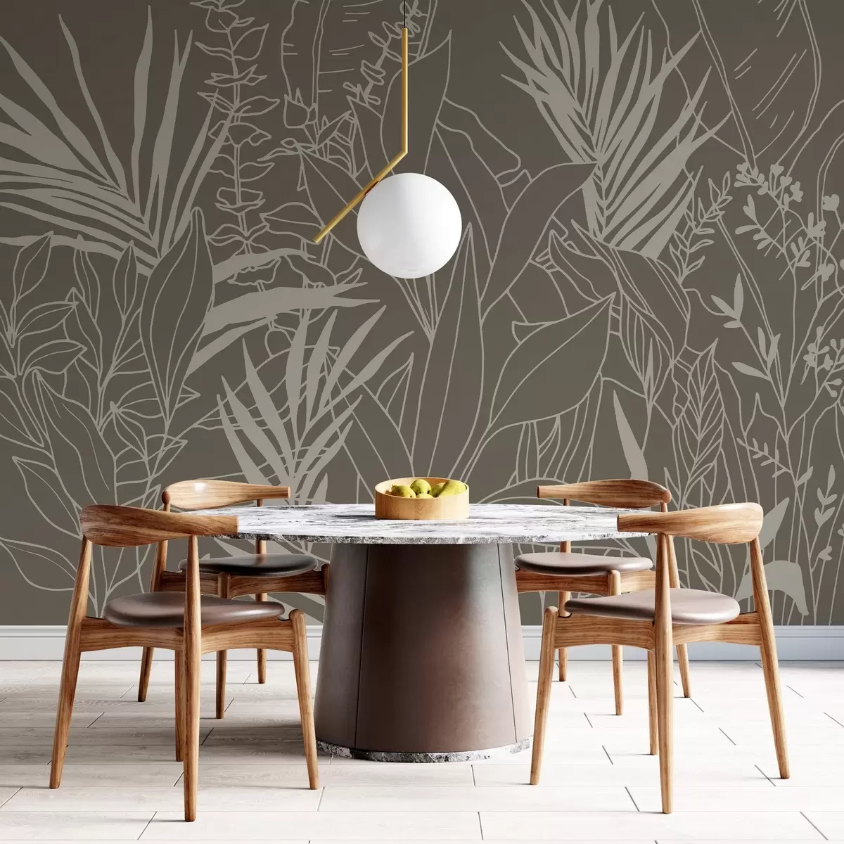 Fotomurales Line Art botánico sobre fondo verde Nr. w02775v1
