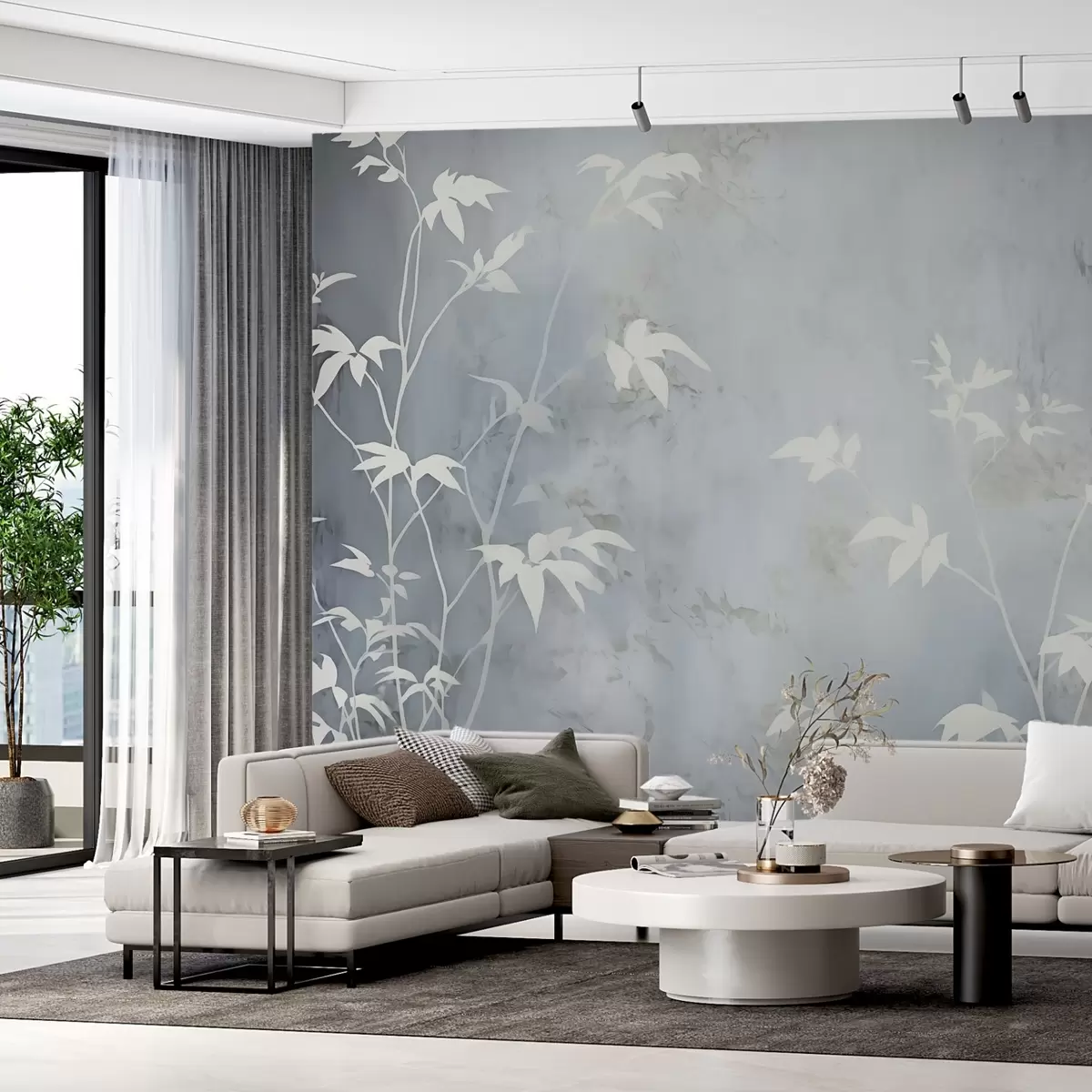 Fotomurales Siluetas blancas de vegetación sobre fondo moteado con textura Nr. w02792