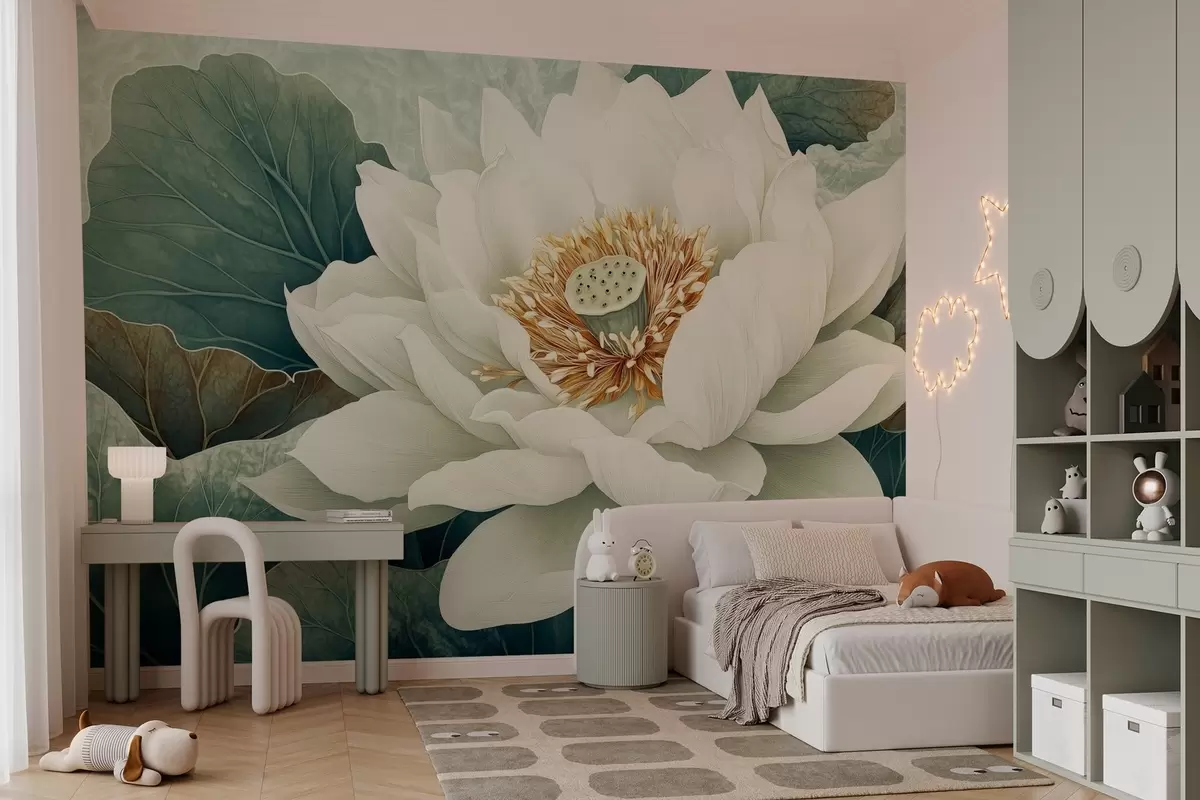 Fotomurales Nenúfar grande sobre un fondo de hojas Nr. w02905
