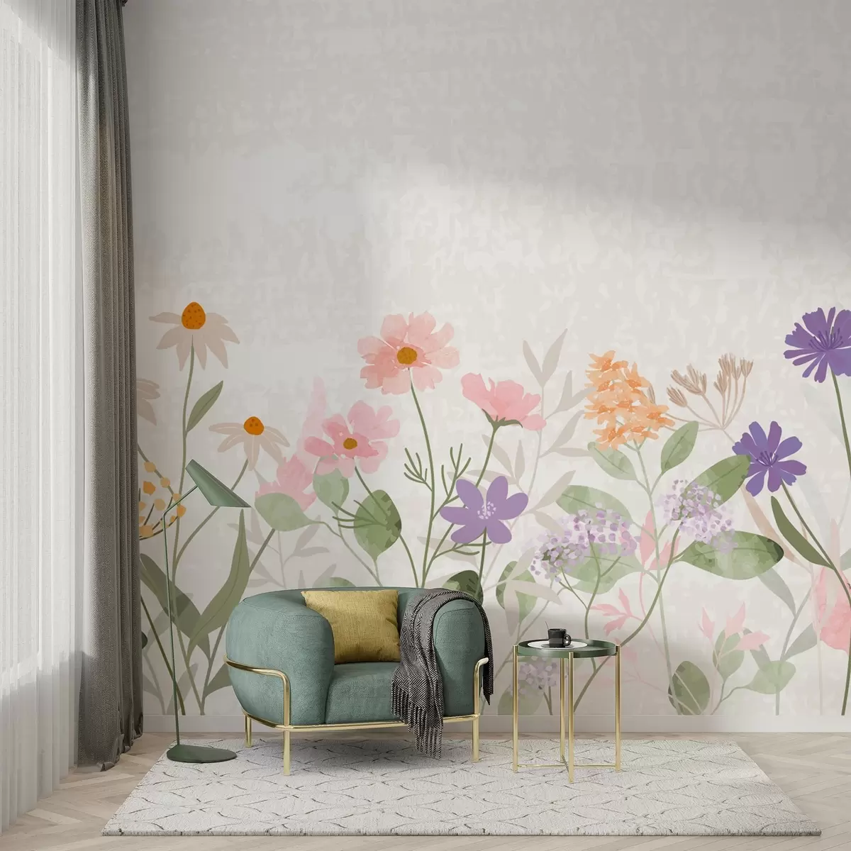 Fotomurales Flores silvestres sobre fondo claro Nr. w03096